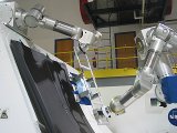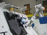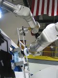 ORU hand-offs between Ranger dexterous arms on the Spacelab Pallet mockup